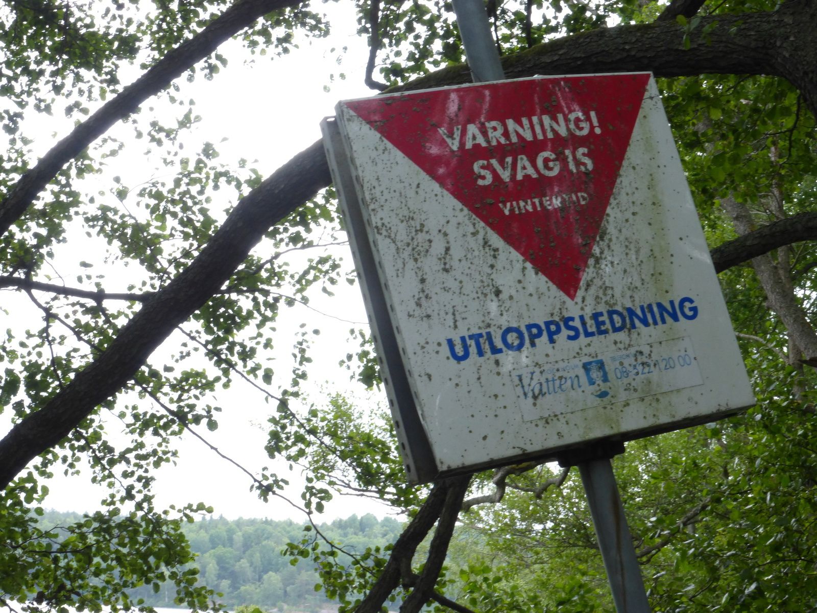 Un panneau précise qu'il est déconseillé de faire du patin à glace en hiver à cette endroit précis, l'évacuation d'eaux usées rendant la glace fragile et donc peu recommandable. Malgré les avertissements, plusieurs morts sont à déplorer chaque hiver en Suède suite à une glace qui s'est brisée.