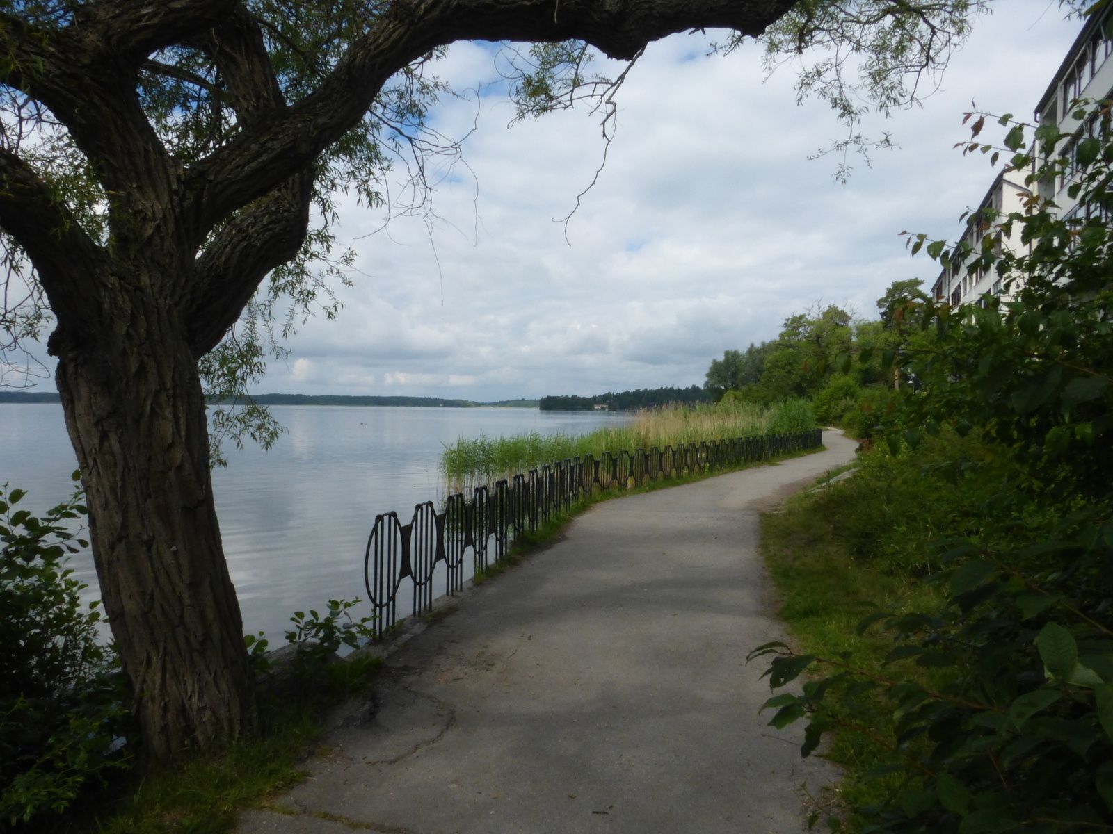 Un autre jour, j'ai pris le métro pour me rendre à Hässelby strand, dans la banlieue ouest de Stockholm, et je ne l'ai pas regretté. Hässeby est située sur les bords du lac Mälaren, tout près de l'île où se trouve Drottningholm. Une belle promenade aménagée longe le lac, on peut y observer des pêcheurs, non loin d'une usine, ainsi que des bateaux, celui que j'ai vu se dirigeant vers l'ouest. Lieu calme et quasi idyllique avec des reines des prés au bord de l'eau et quelques volatiles.
